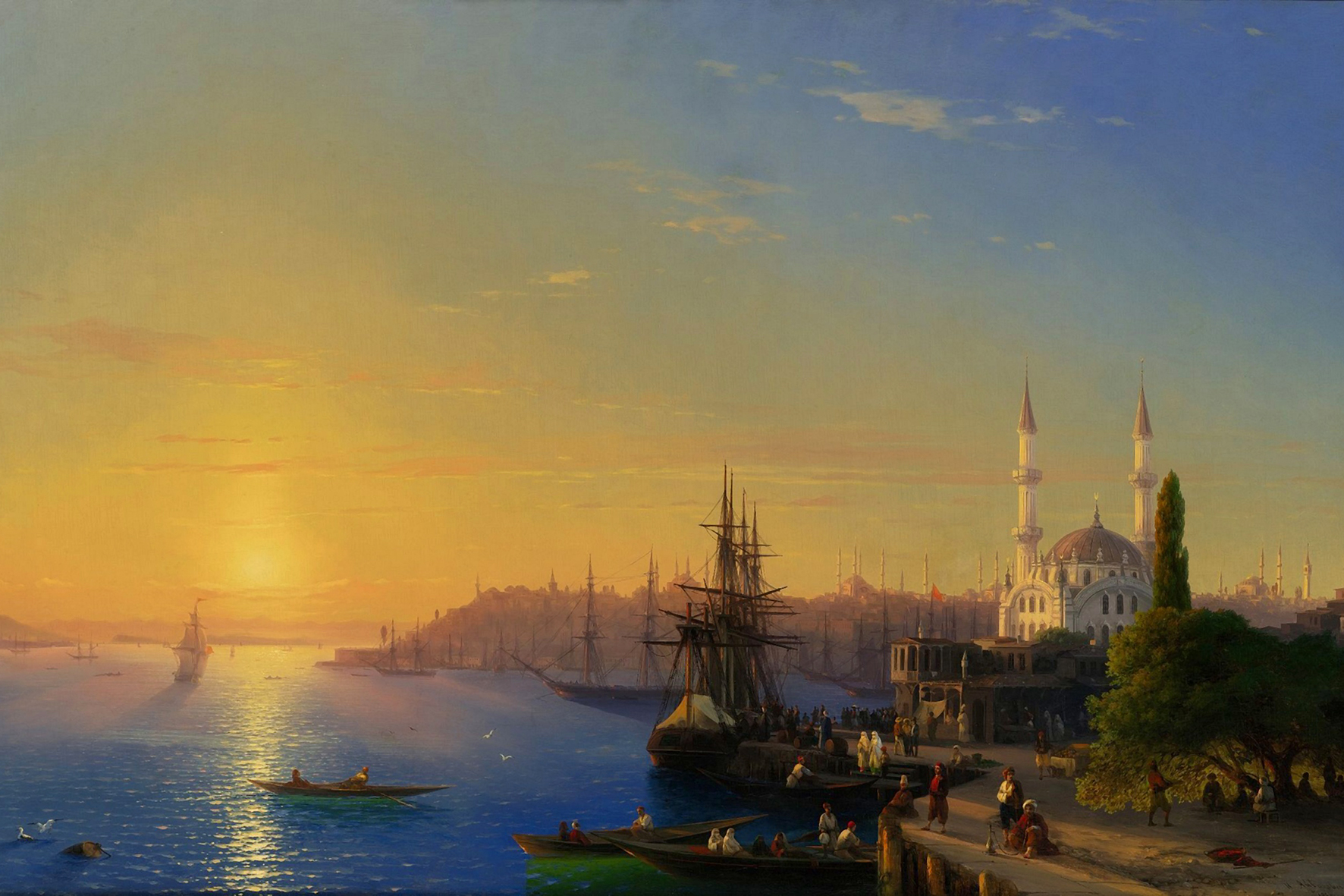Эта работа прославляет город, который Иван Айвазовский считал самым прекрасным на свете. Ни Венеция, ни Неаполь, никакие другие виденные им места не могли сравниться для художника с городом на Босфоре.
