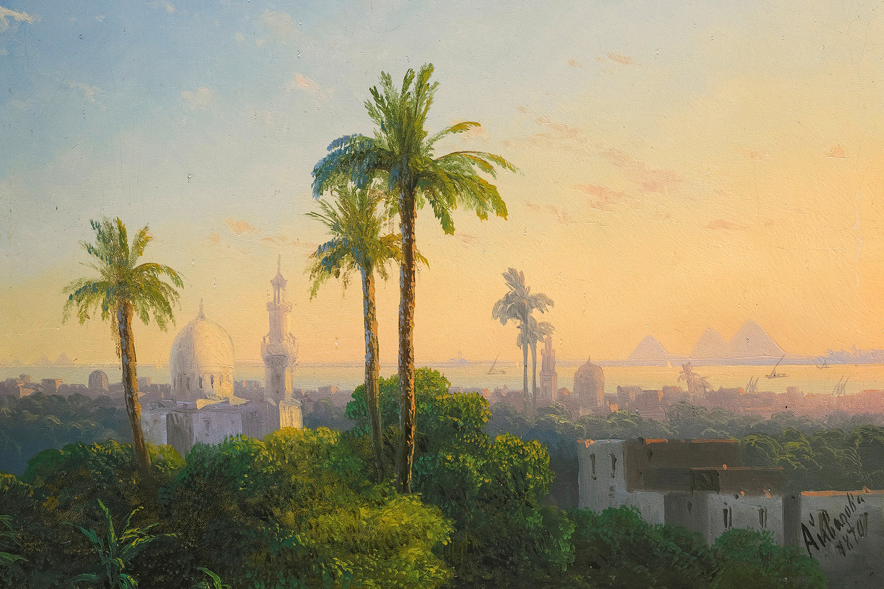 Легкий предрассветный туман над спящим Каиром. Это пейзаж в романтическом стиле является одним из самых любимых у наших заказчиков.