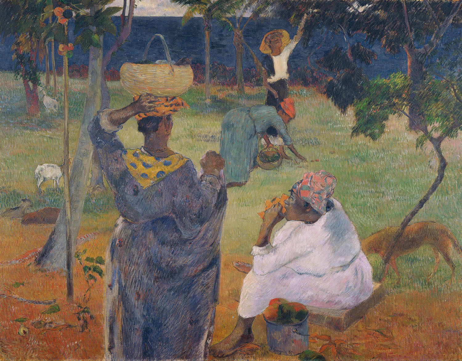 Здесь можно увидеть жизнь таитянских крестьянок во время уборки плодов манго. И хотя природа щедро одаривает жителей острова своими плодами, уборка урожая дело нелёгкое.