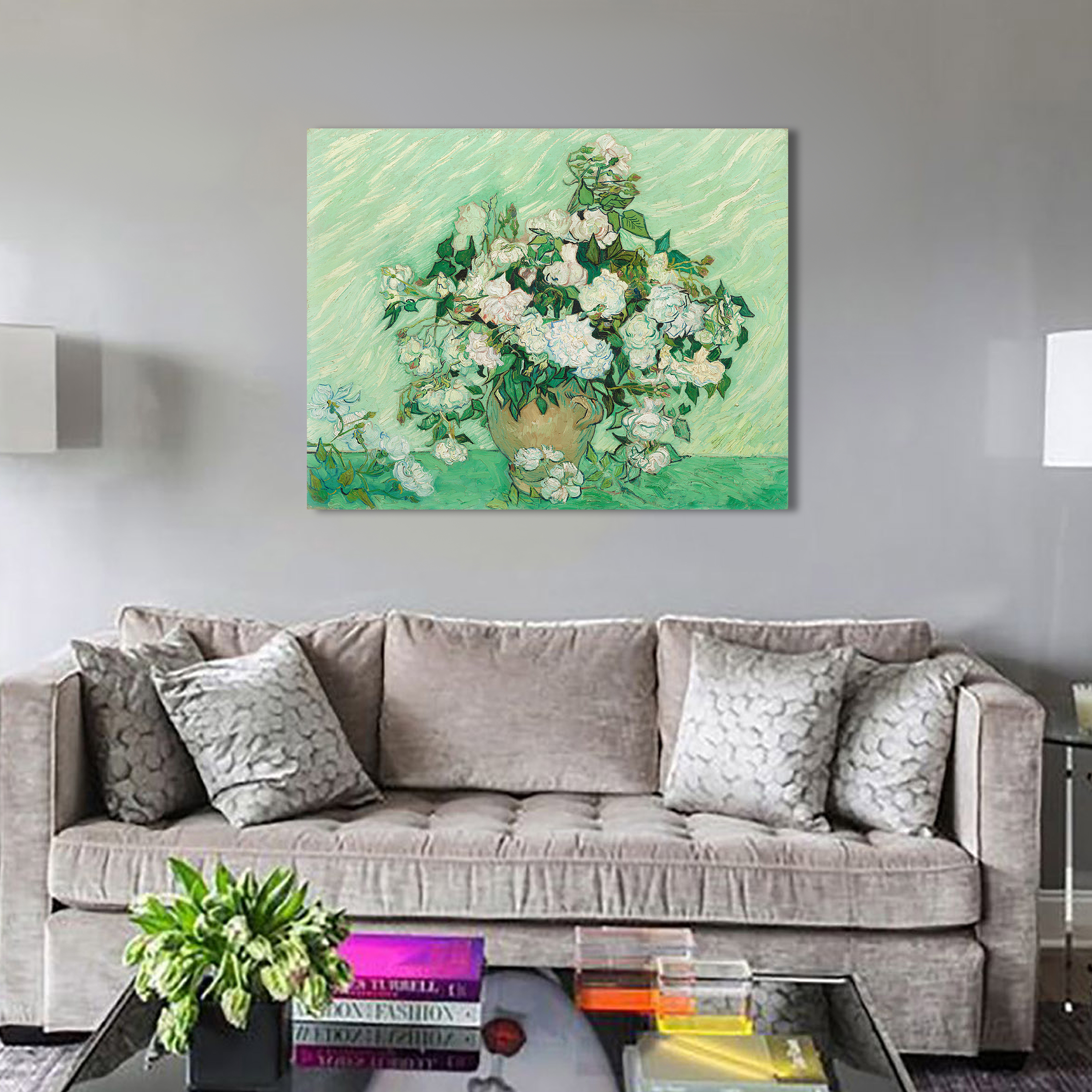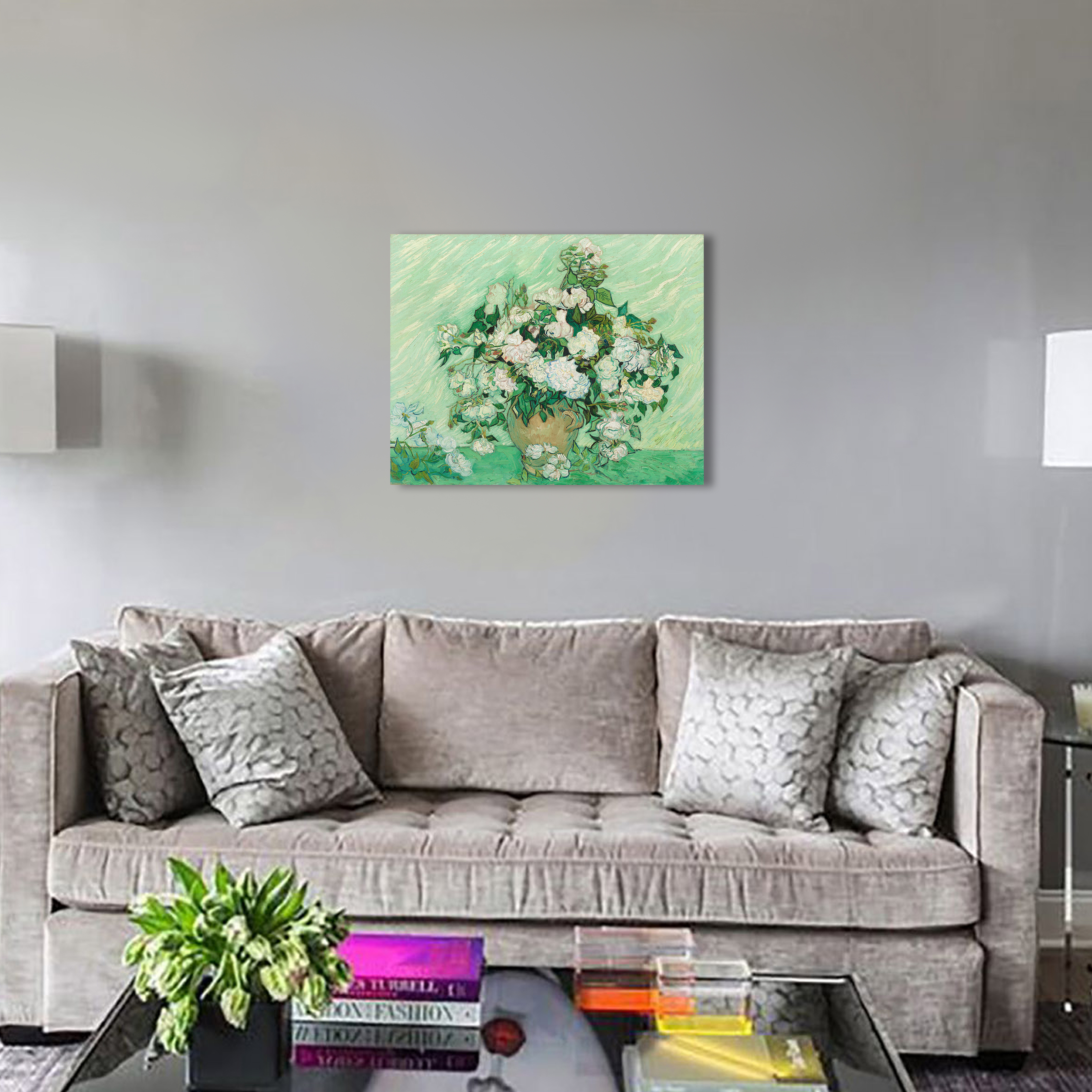 В 1889 году Ван Гог добровольно отправляется в лечебницу для душевнобольных, которая располагалась в бывшем монастыре Сен-Реми. Он писал виды их окна больницы, натюрморты с цветами, сад, копировал работы других мастеров. На этой работе художник изобразил вазу с розами. Некогда пышный букет растрепался, увядающие цветы клонятся вниз, некоторые из них безжизненно лежат на столе. Картина передает настроение светлой грусти, которая, тем не менее, не несет в себе какого-либо негатива.