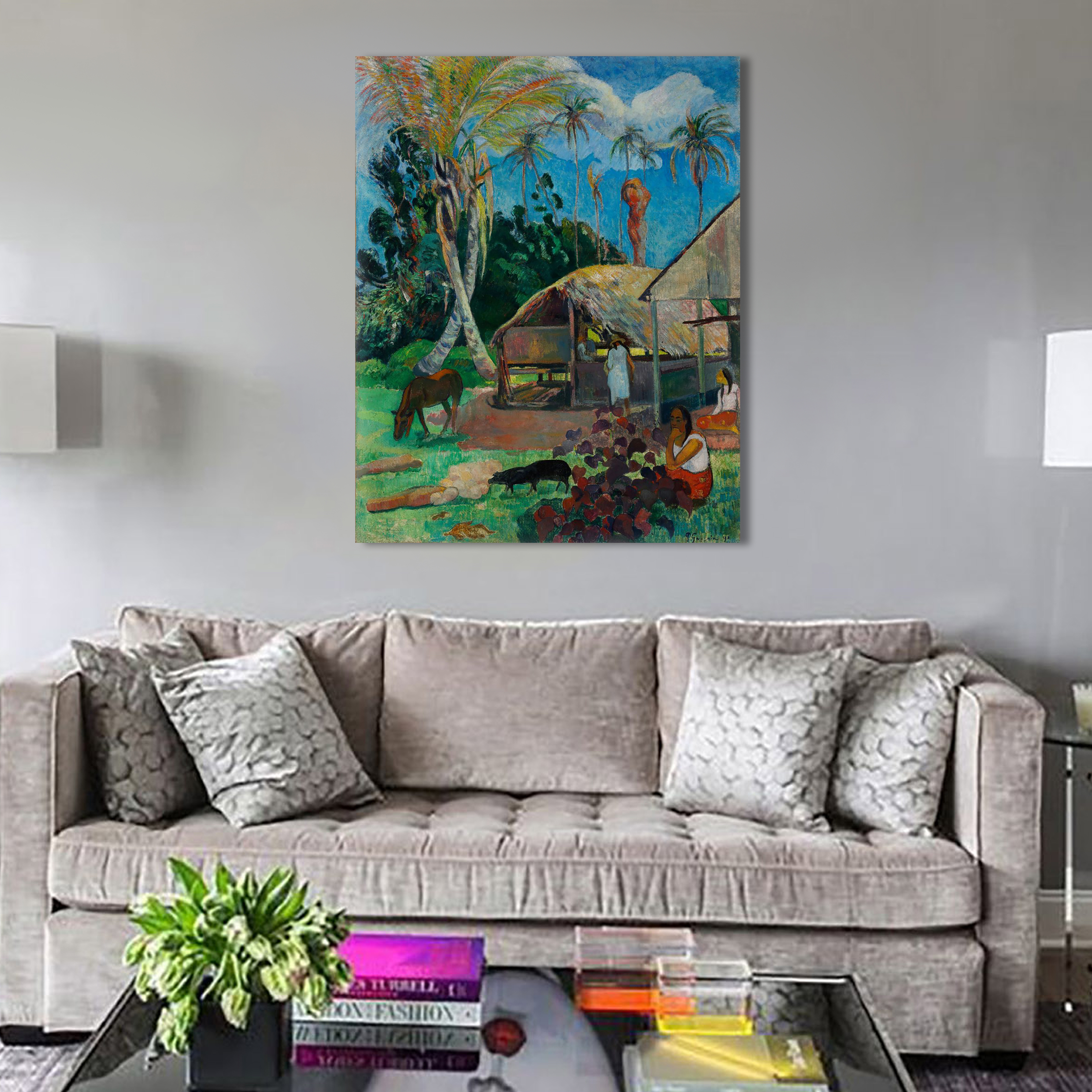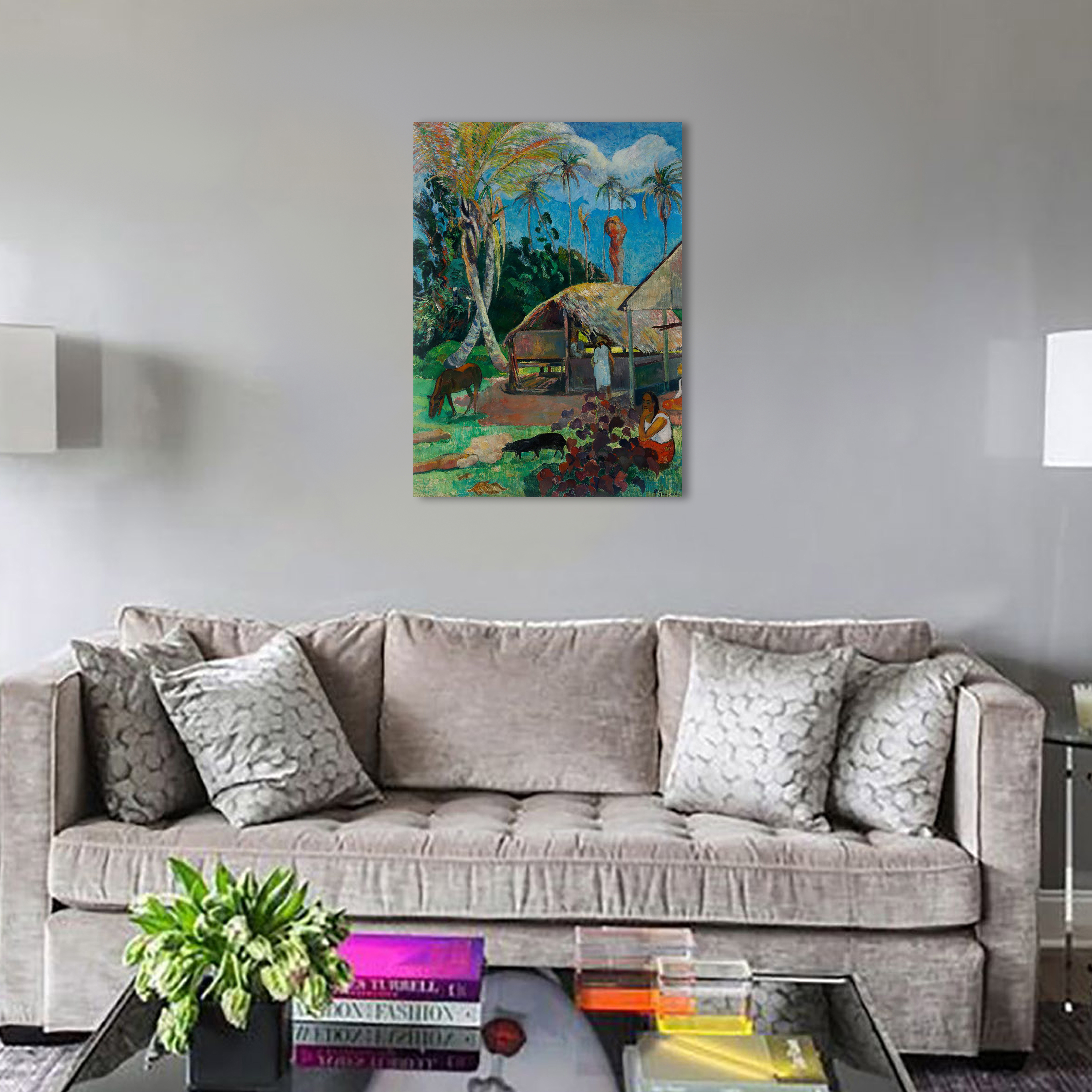 Во время первого таитянского периода в жизни творчество Гогена приобретает те самые знаменитые черты. Он стремился выразить на языке живописи достоинство и гармонию, которые эти народы сохранили от своего древнего образа жизни и культуры. Черные свиньи, которые он написал в свой первый год на Таити, передают этот захватывающий момент стилистического