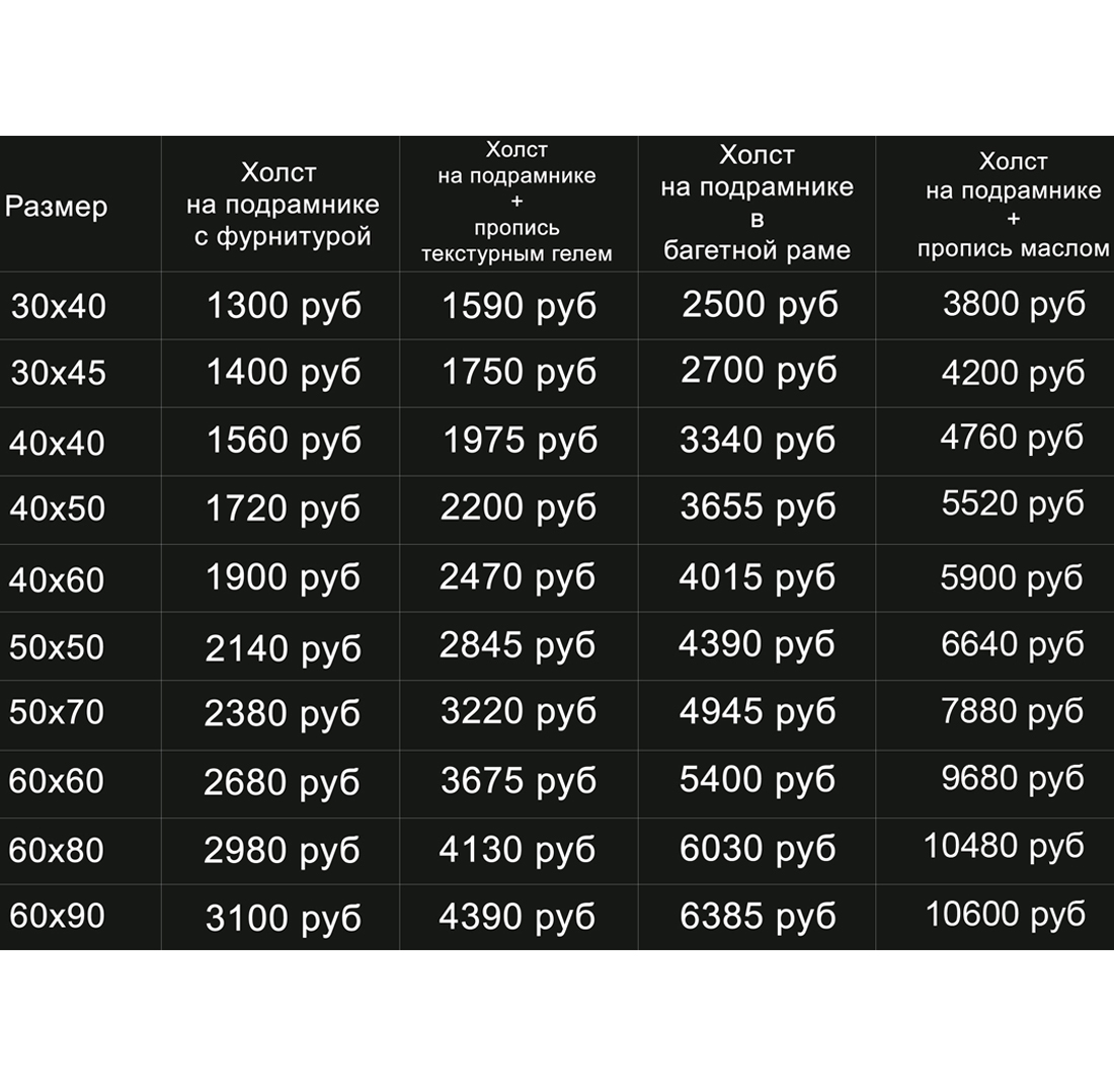 Цены на изготовление картин не стандартного размера рассчитываются индивидуально.