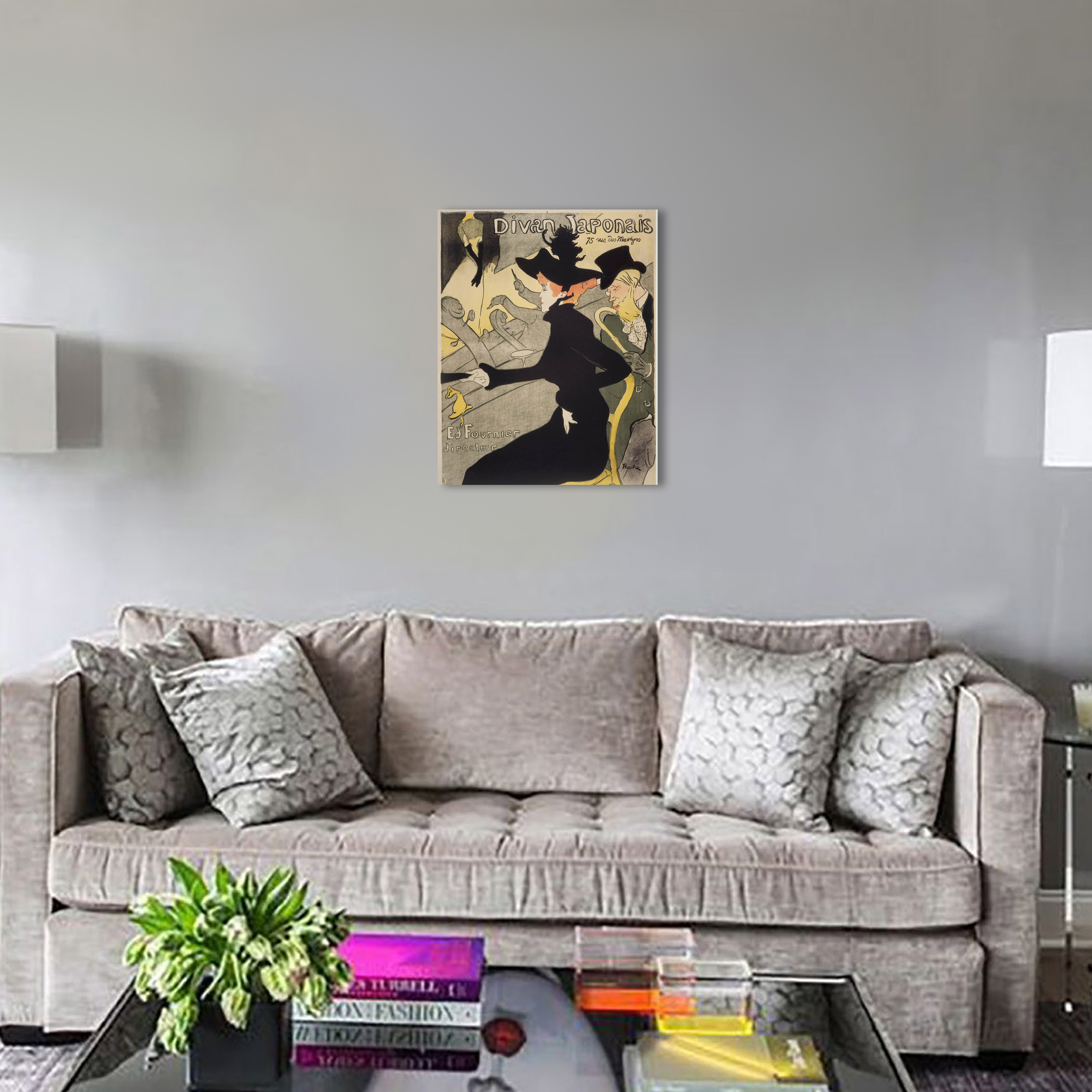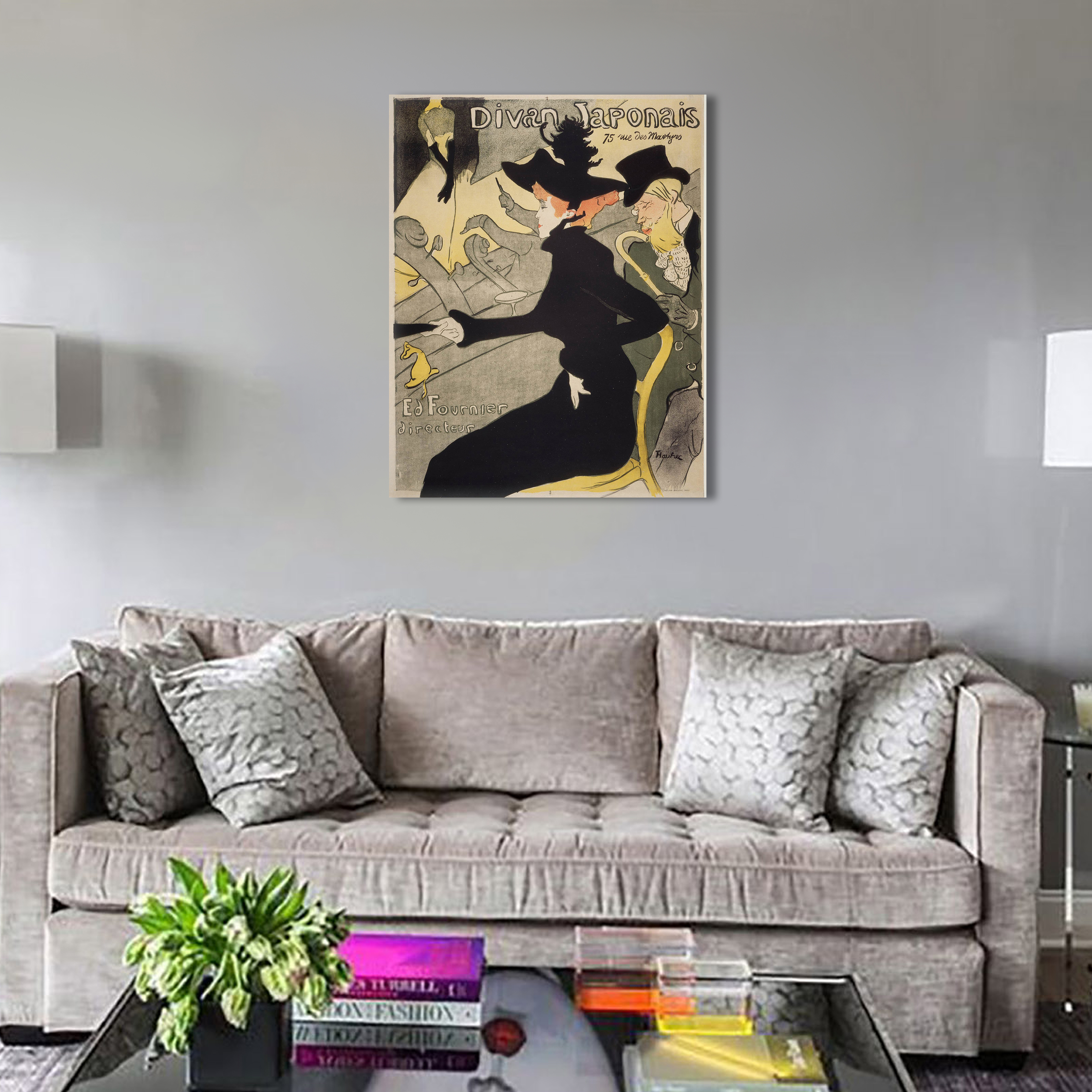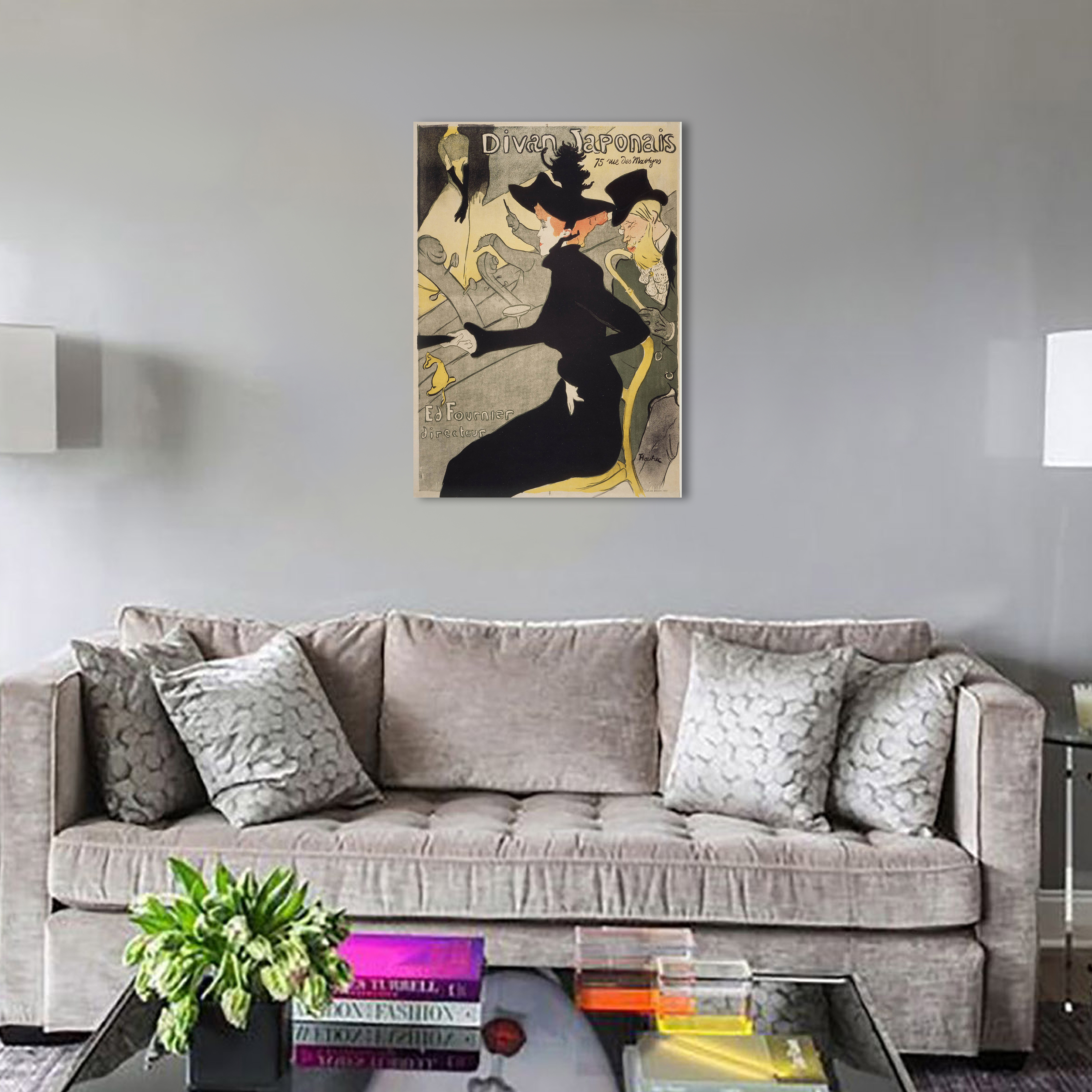 Афиша «Диван Жапоне» или «Японский диван», интересна тем, что Лотрек использовал в ней прием, заставляющий зрителя постоянно переводить взор, не давая сосредоточиться на какой-либо детали. Художник добился ощущения не только искусственности происходящего, но и сумел стереть грань, разделяющую мир зрителя с тем, что происходит на сцене.