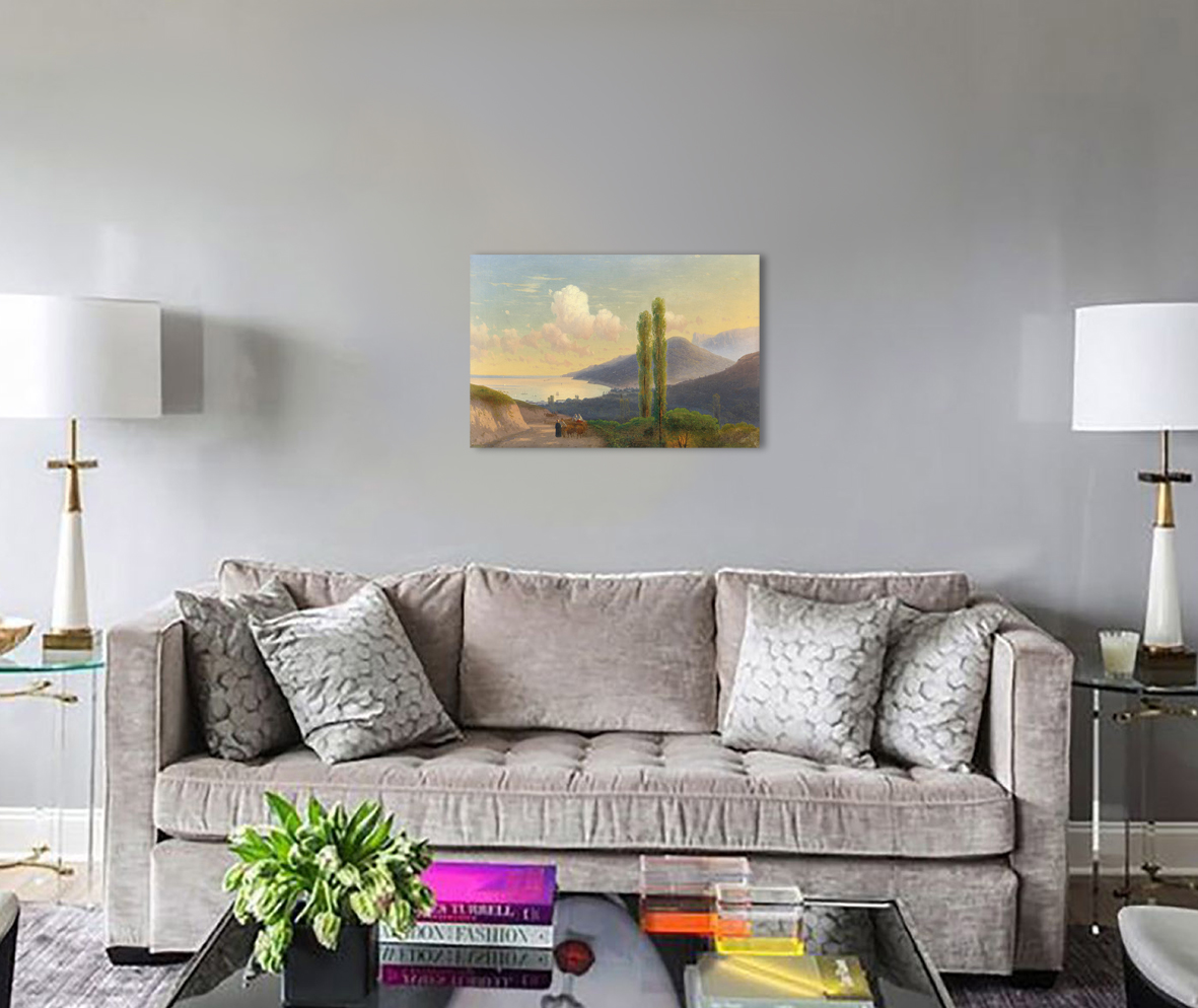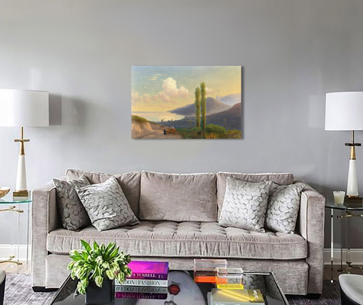 На картине «Дорога на Гурзуф», написанной Айвазовским в 1878 году, открывается вид с гурзуфской дороги на Ялтинскую бухту. Вдалеке, на западной стороне бухты, различим мыс Ай-Тодор, видны Ай-Петринская яйла, вершина Ай-Петри, а чуть ближе – конусовидная гора Могаби с расположенной на ней Ливадией, сама Ялта и Ялтинская гавань с кораблями, склоны Массандры, покрытые зеленью.