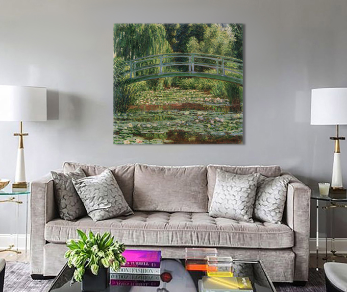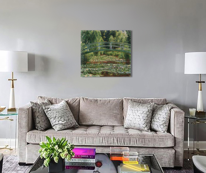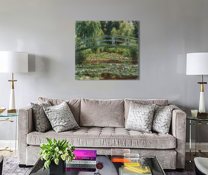 Картина Клода Моне, написанная в 1899 году в саду своего дома в деревни Живерни. Этот сюжет художник повторил много раз, в первых работах мостик залит светом, он сказочно-завораживающий, позже слепнущий художник почти не различает цветов, краски на палитре разложены по порядку, чтоб можно было нащупать нужную – и японский мостик то погружается в голубоватую дымку, то загорается осенне-багряным пламенем или тонет в напряженных тенях.