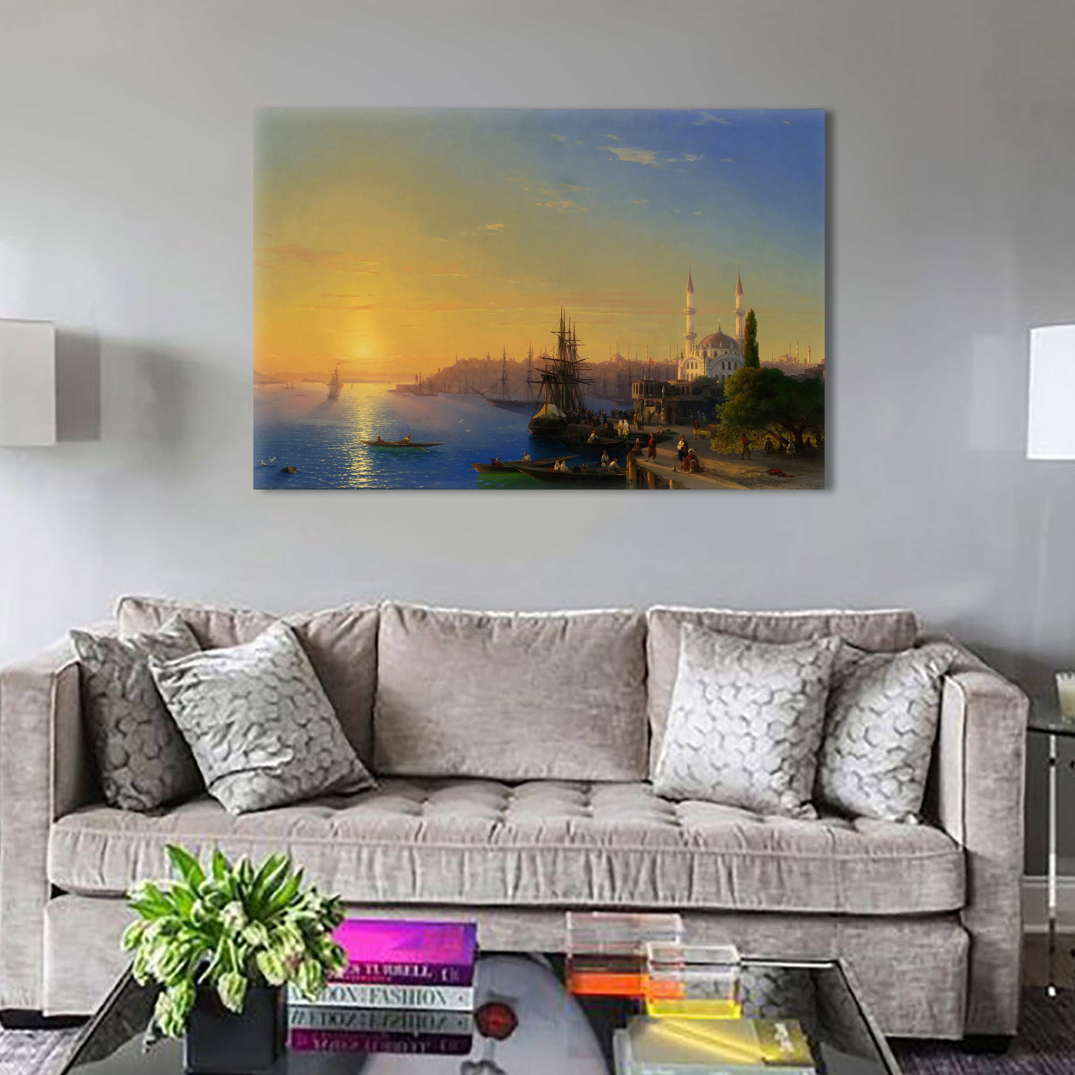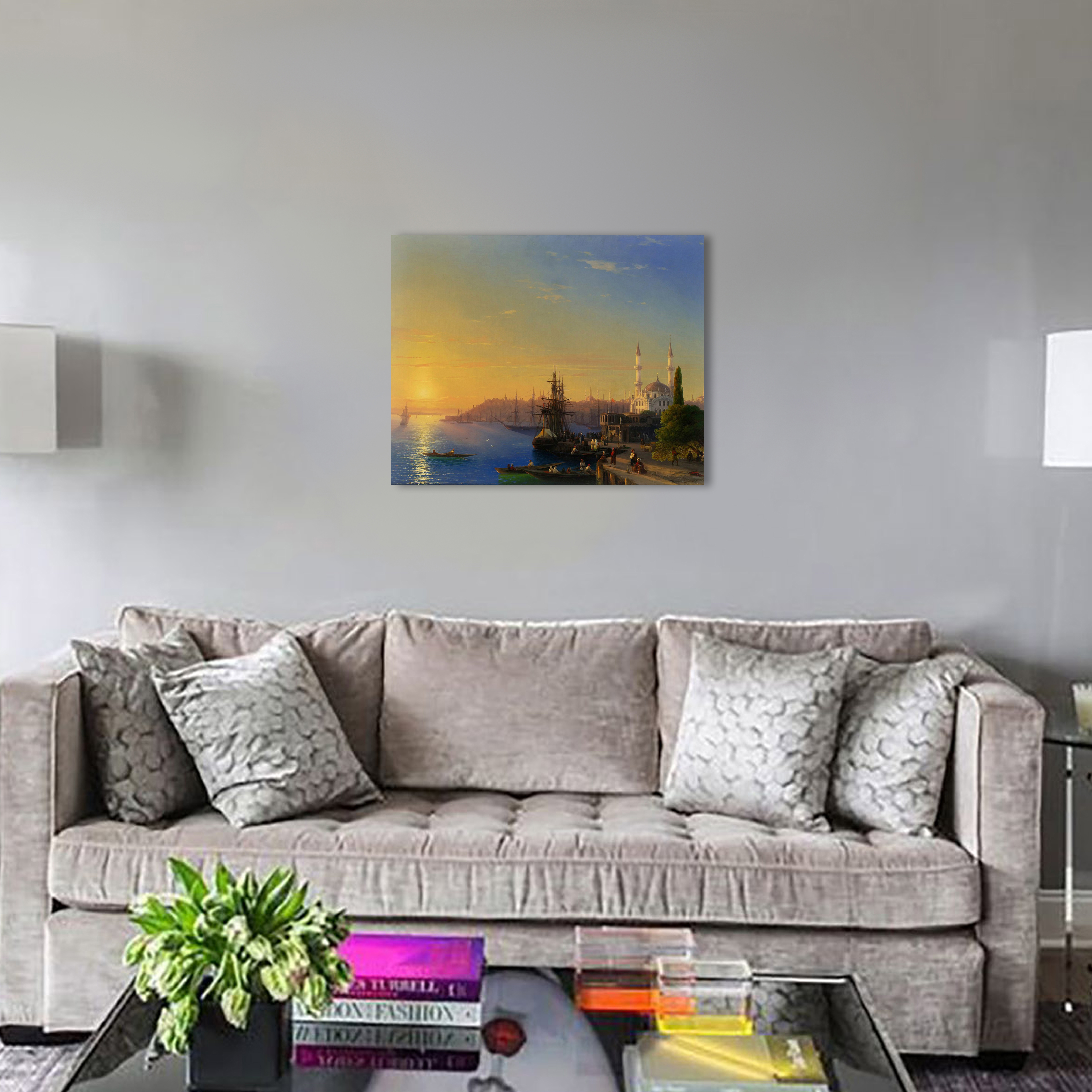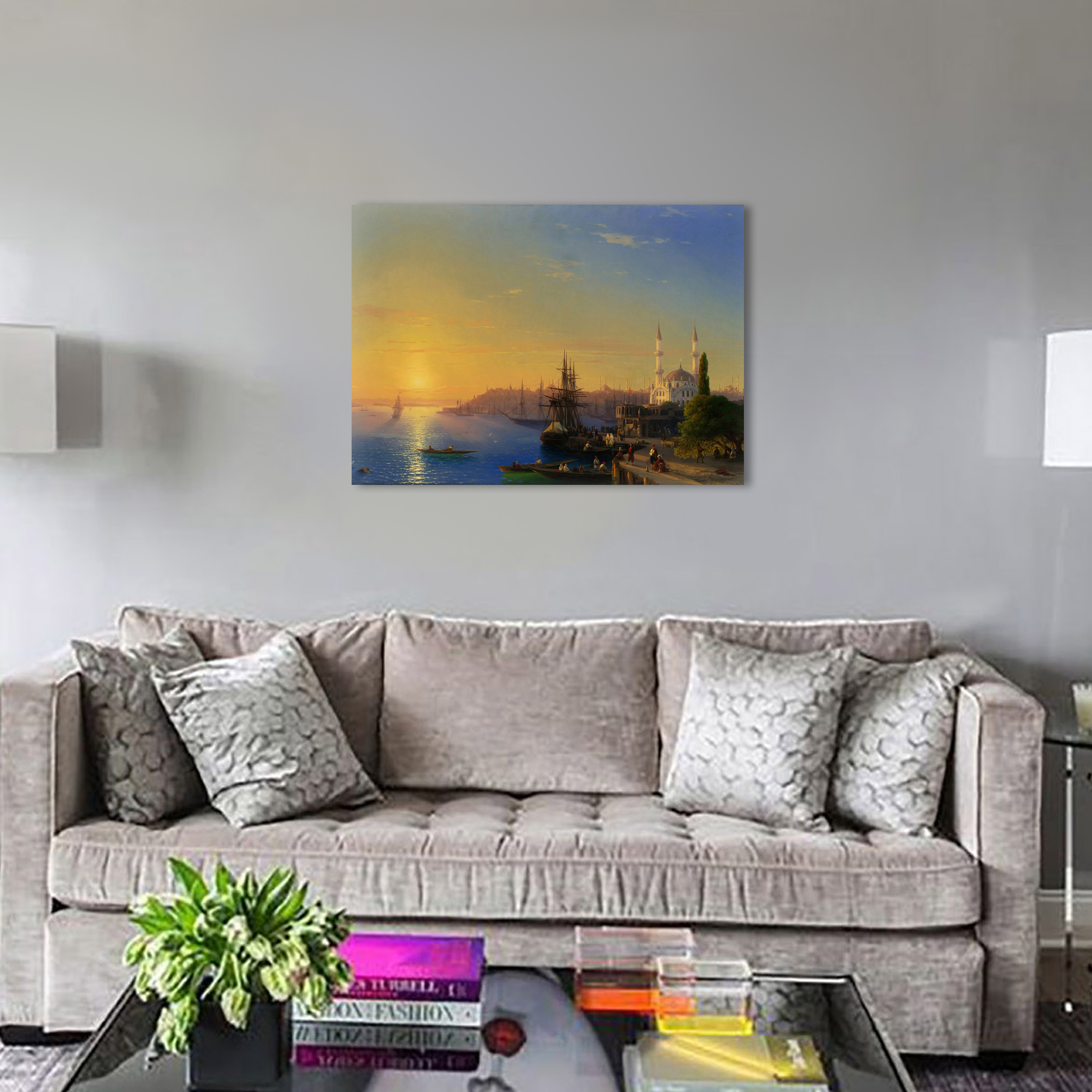 Эта работа прославляет город, который Иван Айвазовский считал самым прекрасным на свете. Ни Венеция, ни Неаполь, ни какие другие виденные им места (а путешествовать ему довелось немало) не могли сравниться для художника с городом на Босфоре.