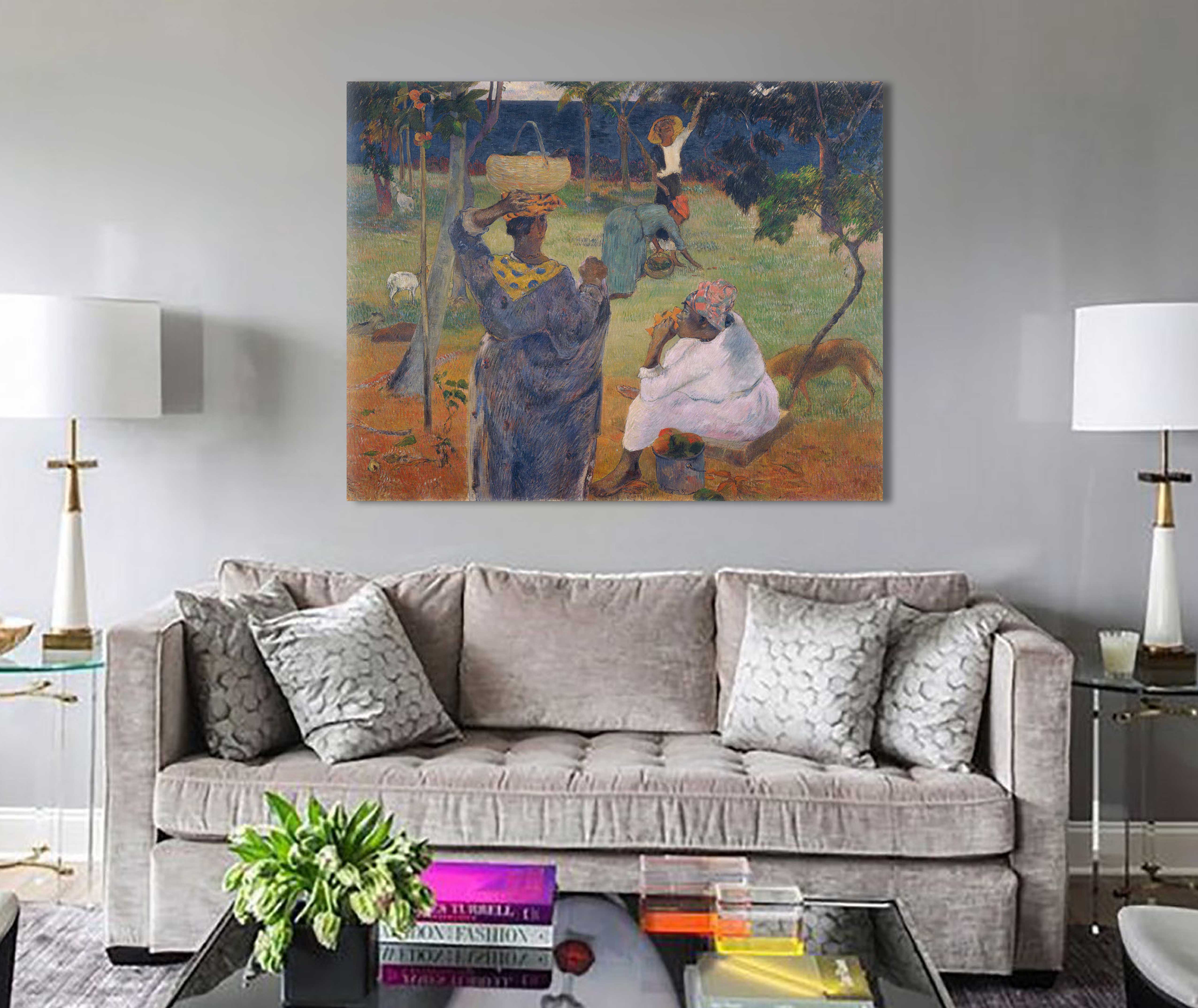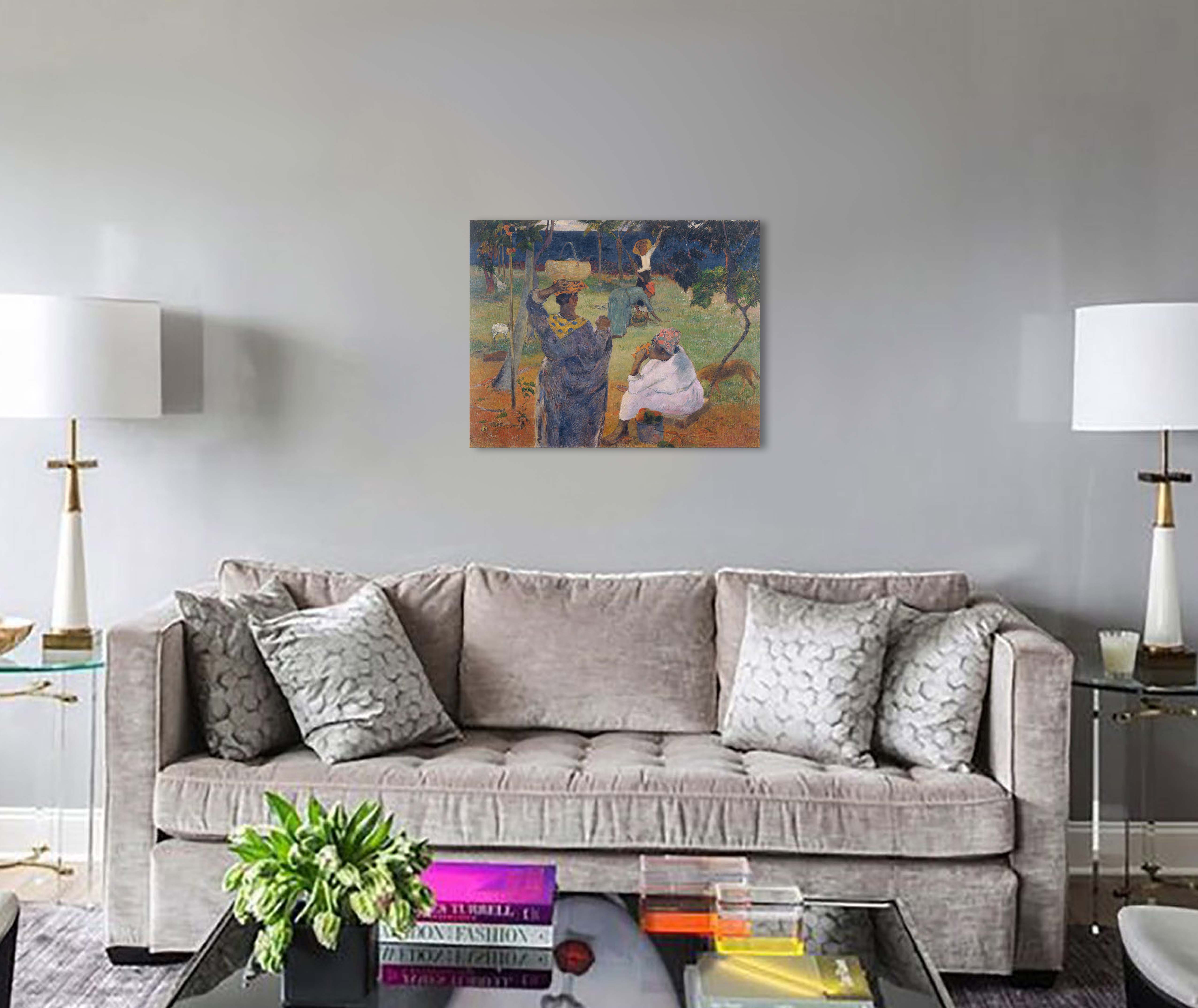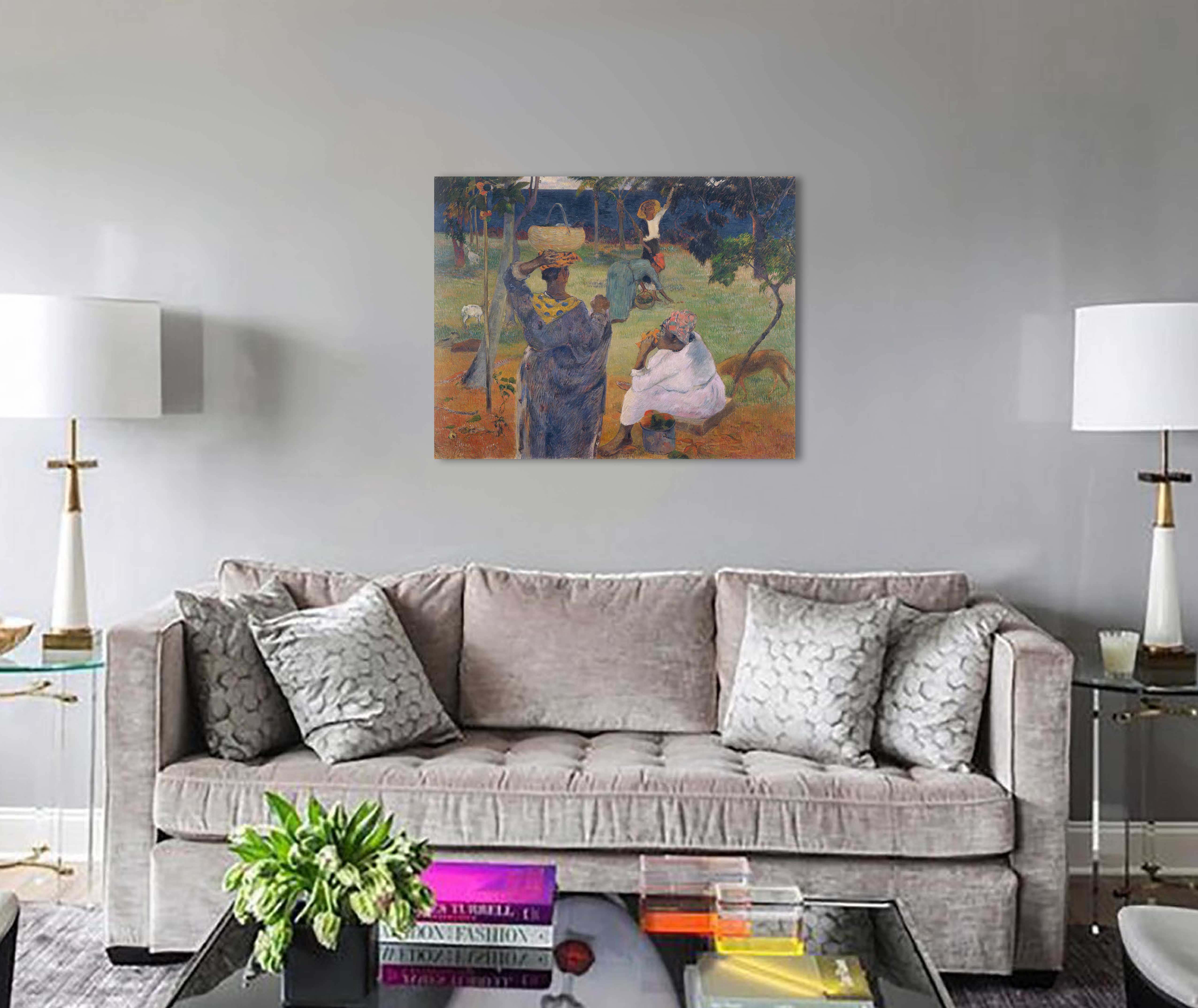 На этой картине Поля Гогена можно увидеть жизнь таитянских крестьянок во время уборки плодов манго. И хотя природа щедро одаривает жителей острова своими плодами, уборка урожая дело нелёгкое. Жарко, душно, стремянок у туземок не было.