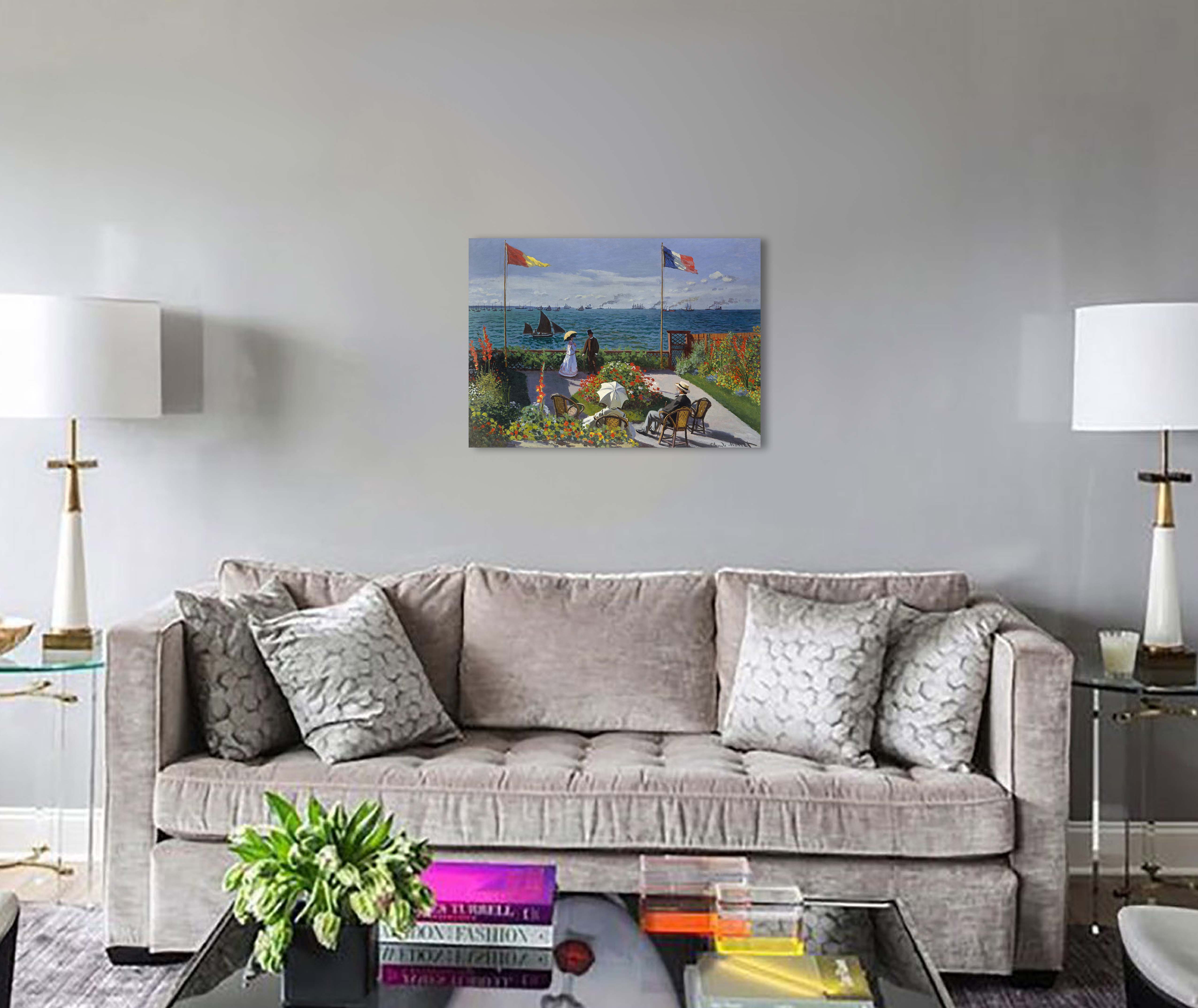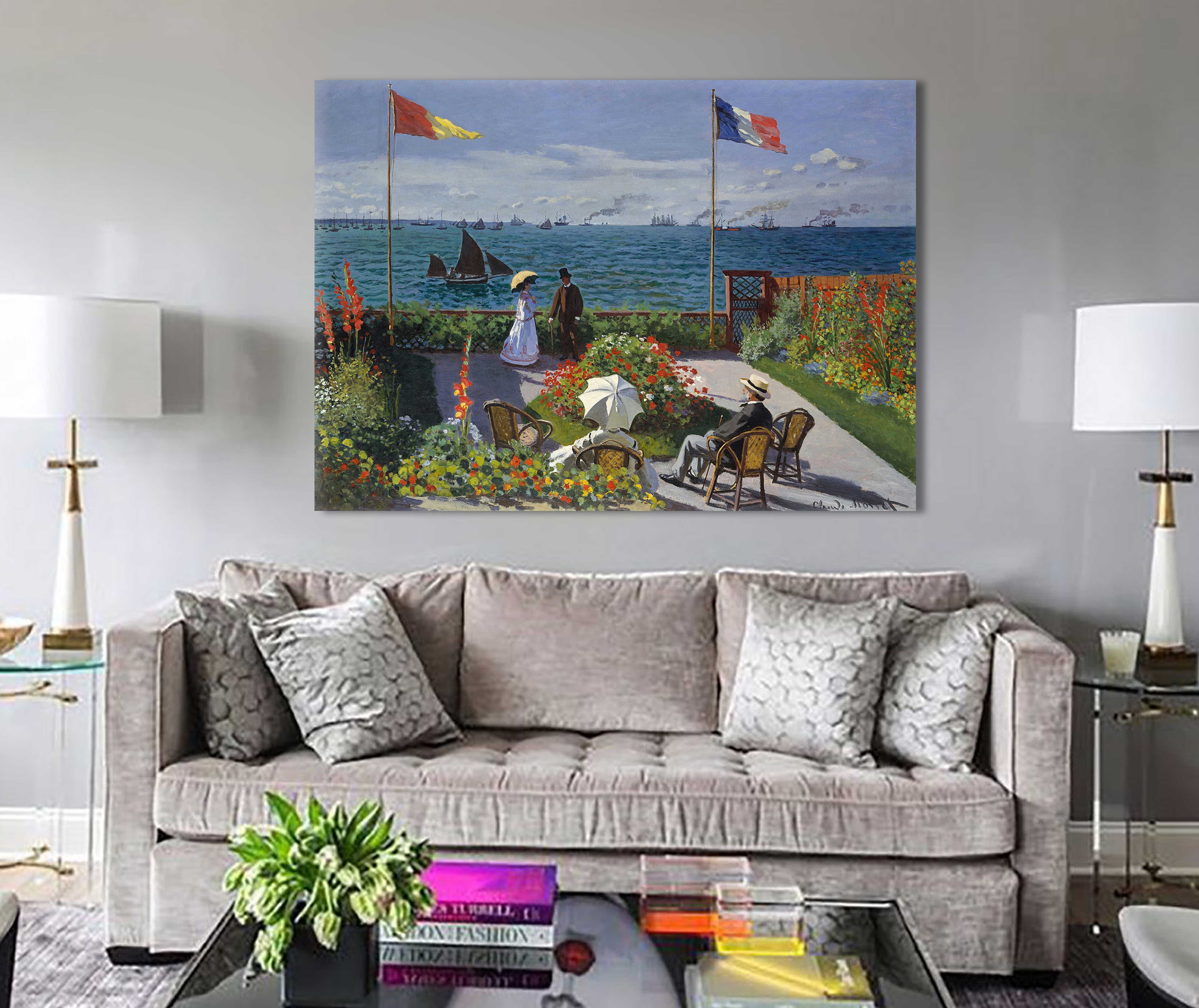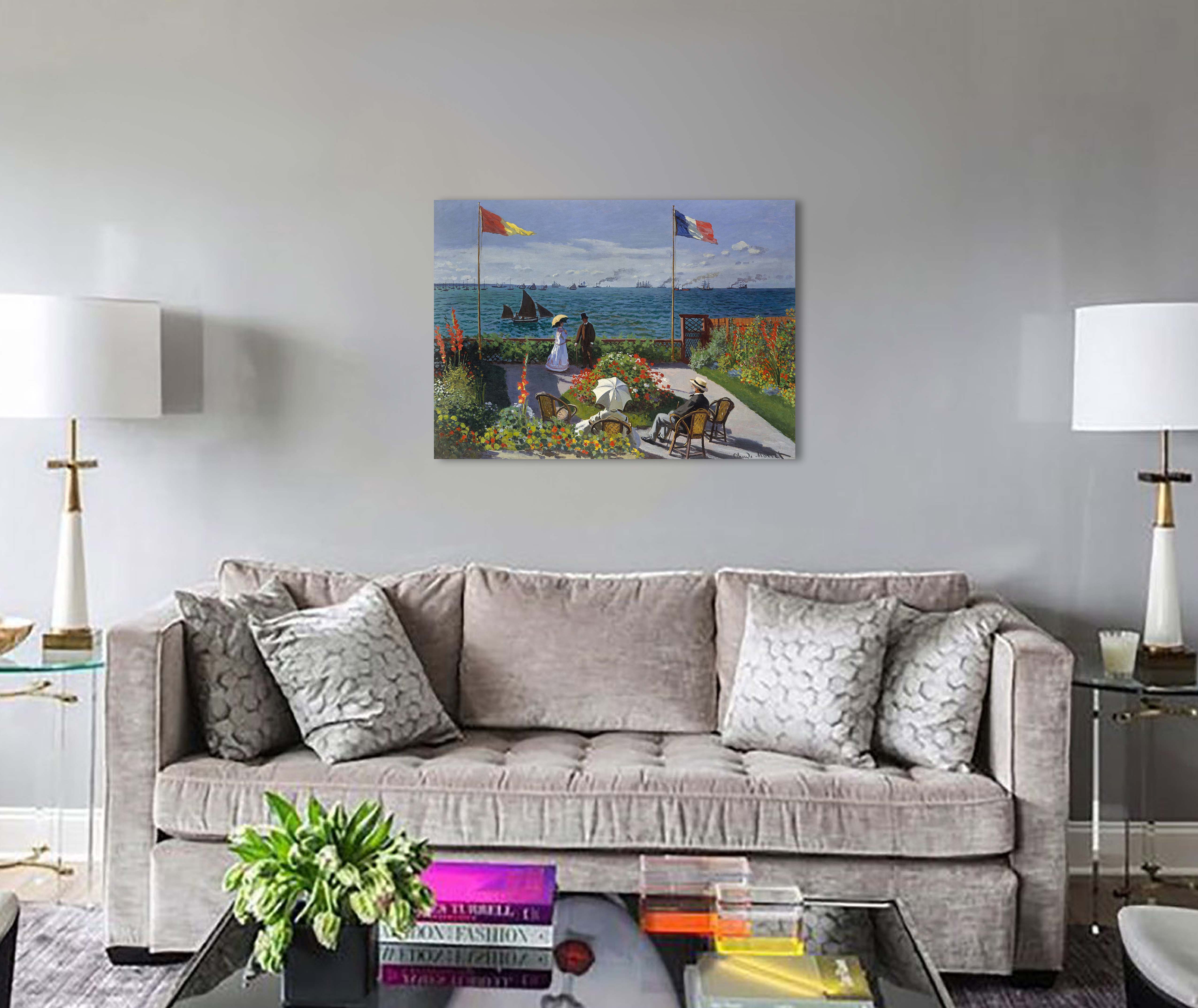 Стоит отметить, что сама композиция полотна достаточно оригинальна, если учитывать тот факт, что для Моне, она является несколько несвойственной. Даже при беглом осмотре картины, сразу бросается в глаза тот факт, что картина не имеет четко определенного центра. Достоверно известно, что в кресле, на правой части картины сидит именно отец Клода – Адольф.