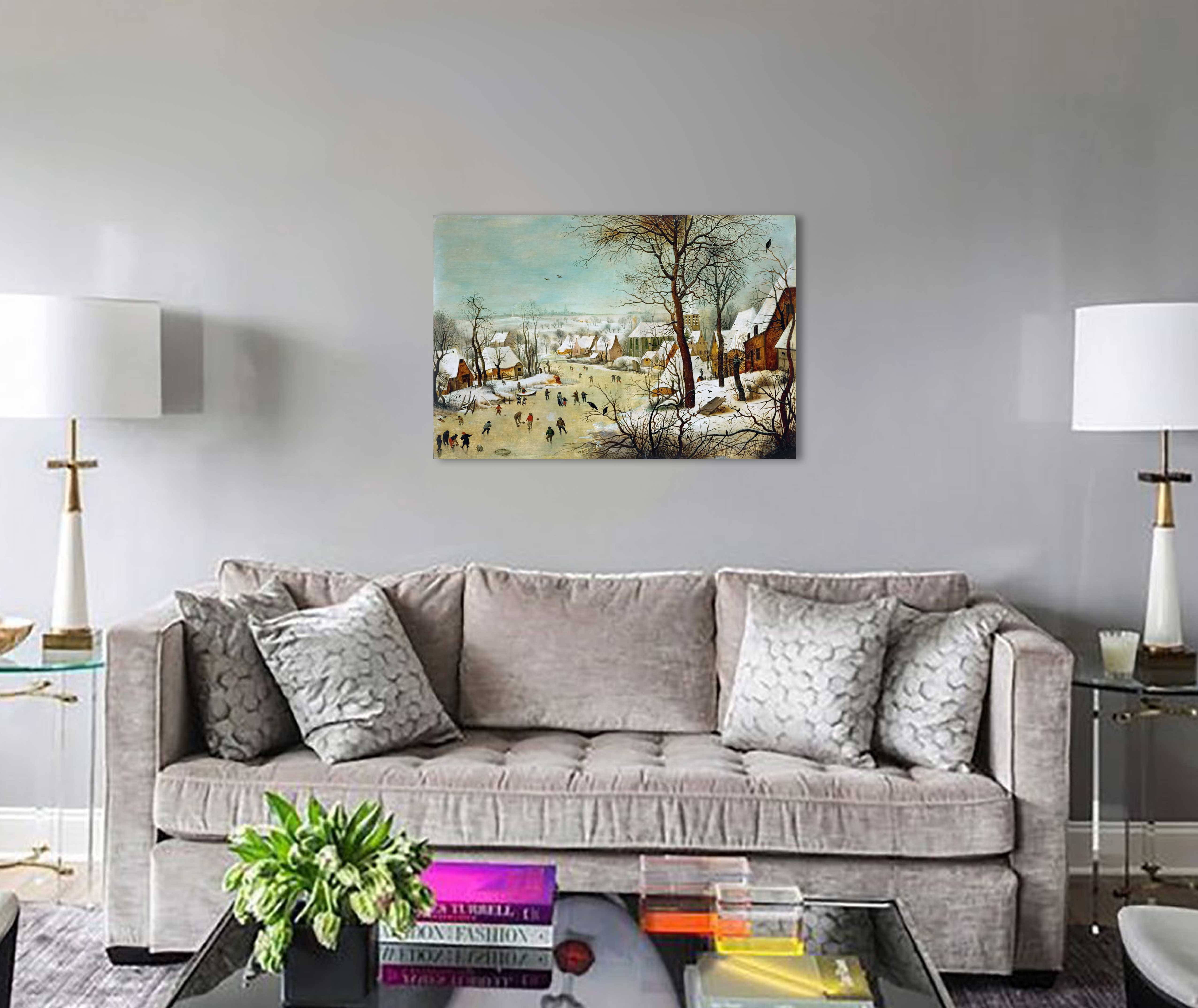 Зимний пейзаж с конькобежцами и ловушкой для птиц